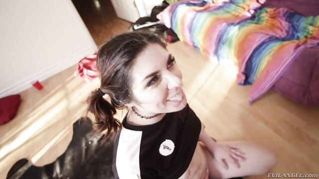 Cutie brunette Keira Croft likes swallowing black sperm after sex