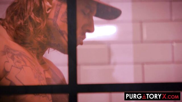 Description:After willfully having every hole destroyed by two inked studs, this femme-fatale Eden Ivy lures one of them Bo Sinn back to her place for more hard banging debauchery. Bo’s more than excited to use her body again with his incredibly well endowed manhood. Determined to mesmerize her prey, Eden sword-swallows his entire 10” tattooed cock and then allows him to pummel her juicy pussy and ti